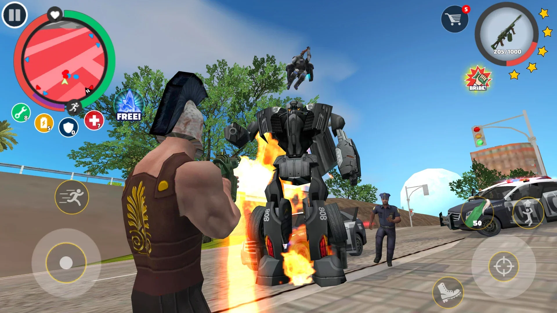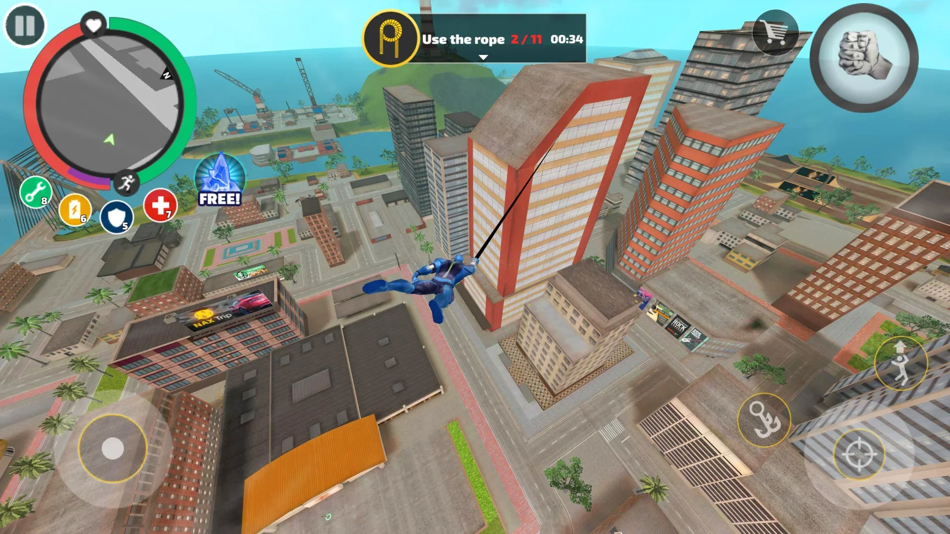 Rope Hero: Vice Town - безумный супергеройский экшн с открытым миром. События происходят в большом городе, где полно преступности и суперзлодеев. Главному герою предстоит вжиться в роль могучего супергероя, и спасти город от криминала. Однако, ничего не запрещает самому творить бесчинства, угонять машины и нападать на прохожих, или полицию. Игра дает полную свободу в плане геймплея, но при этом есть сотни видов занятий.