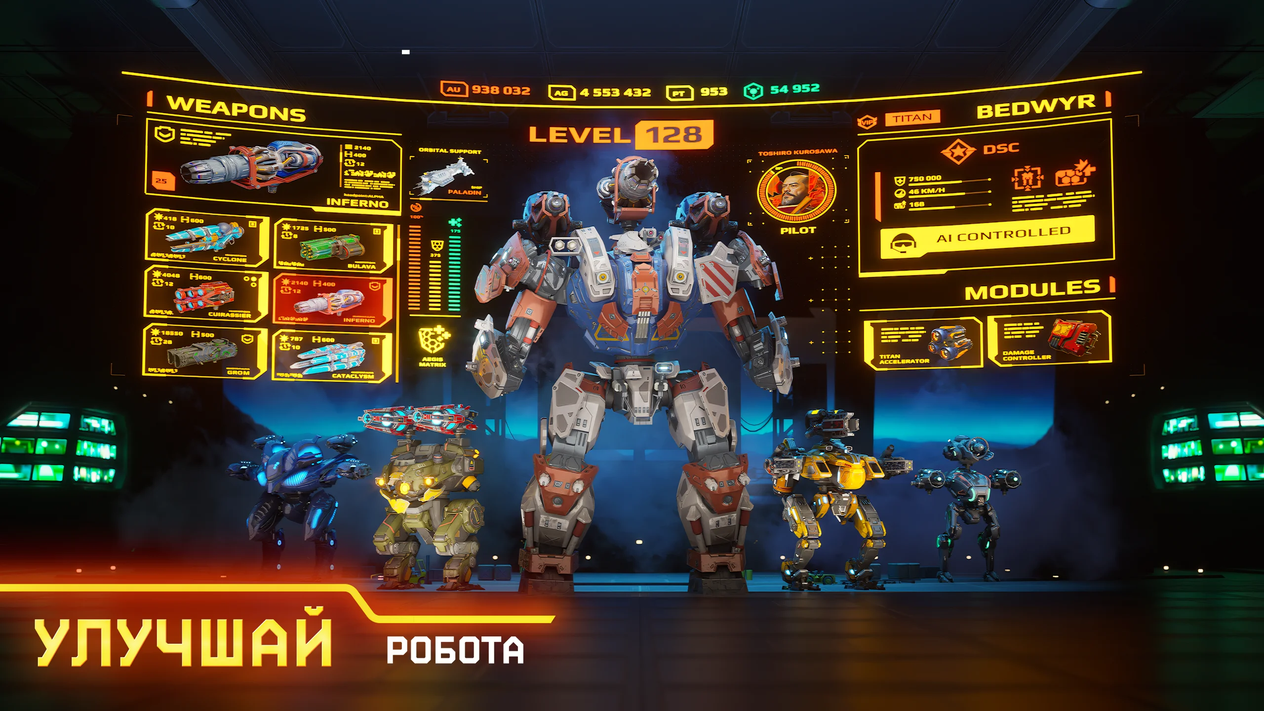 - Возможность выбора любого робота;