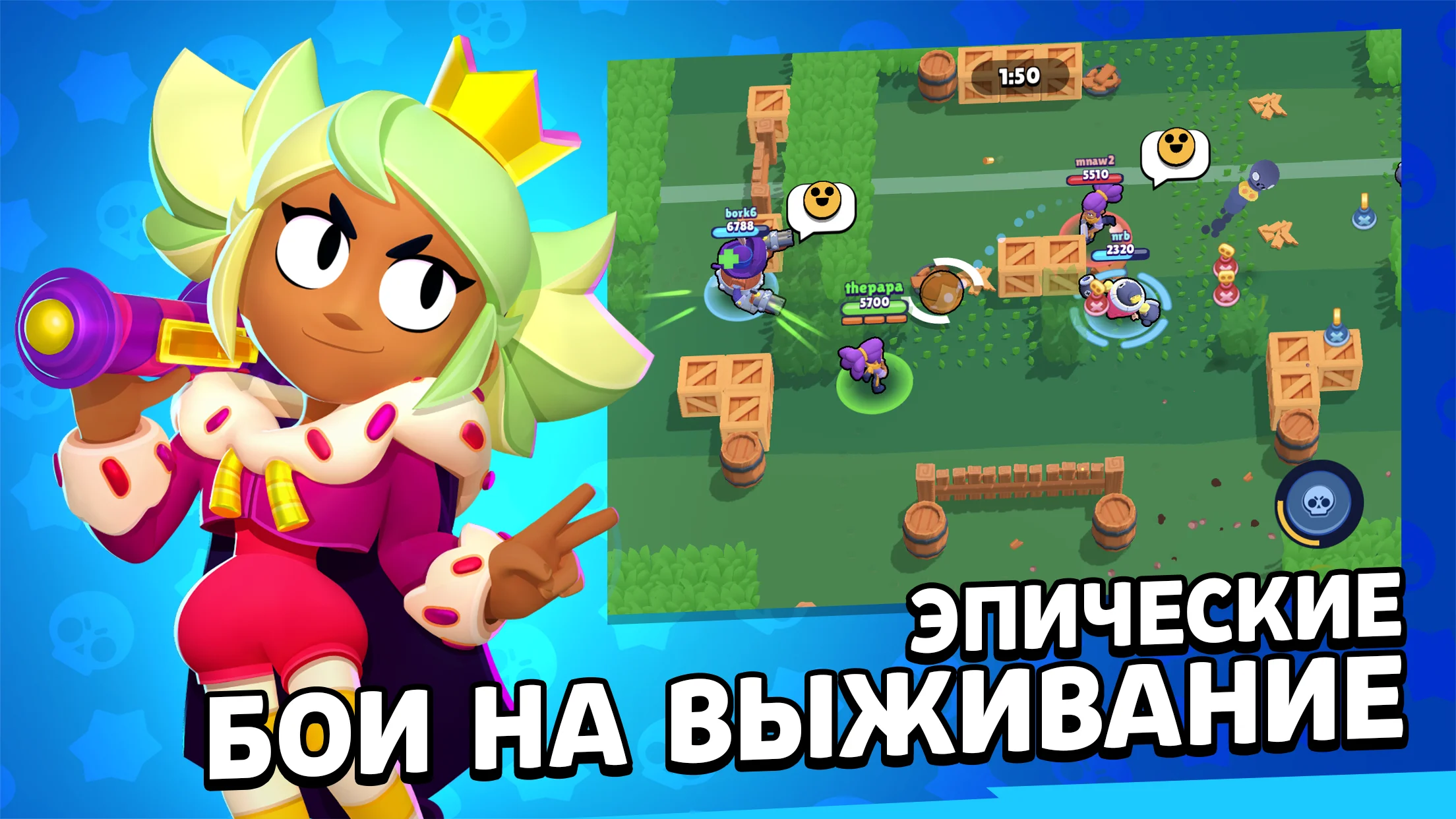 Присоединяйся к миллионам игроков в Brawl Stars и покажи всем, на что ты способен! И помни, пацан: в этой игре только ты решаешь, кто станет следующей звездой арены.