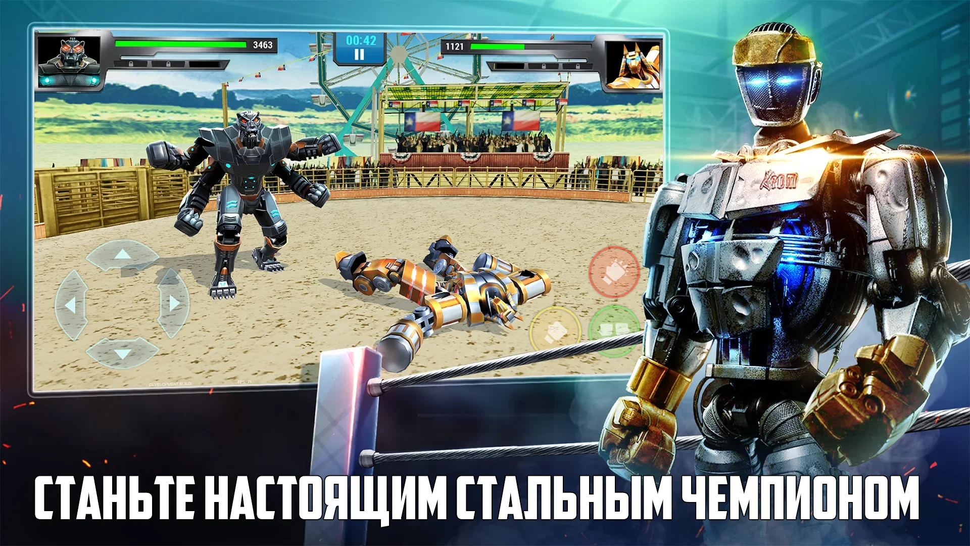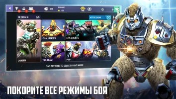 Real Steel Boxing Champions - Это настоящая битва роботов боксёров, которого вы сами создаёте из 1500+ деталей. Здесь игроку предстоит не только сражаться на ринге, но и самостоятельно создать и модернизировать своего бойца, постепенно совершенствуя его боевые характеристики. Здесь геймеру доступно 32 уникальных в своем роде робота. Но это еще не все. Ведь каждого из них человек может модернизировать по собственным предпочтениям. Для этого есть более полутора тысяч деталей. Каждая из них влияет на боевые характеристики машины. Кроме этого, игрок может работать и над внешним видом своего подопечного, подбирая ему огромные кулаки или мощный торс.