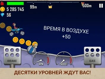 Hill Climb Racing - Выбирайте автомобиль и отправляйтесь в путешествие по необычным дорогам. Попробуйте продержаться как можно дольше. Собирайте монеты и канистры с бензином. Последнее важно, если вы хотите проехать как можно дальше. Суть платформера проста: выбирайте транспорт и постарайтесь проехать как можно дальше. Местность непростая. Постоянно изменяющийся ландшафт добавит трудностей в прохождении.