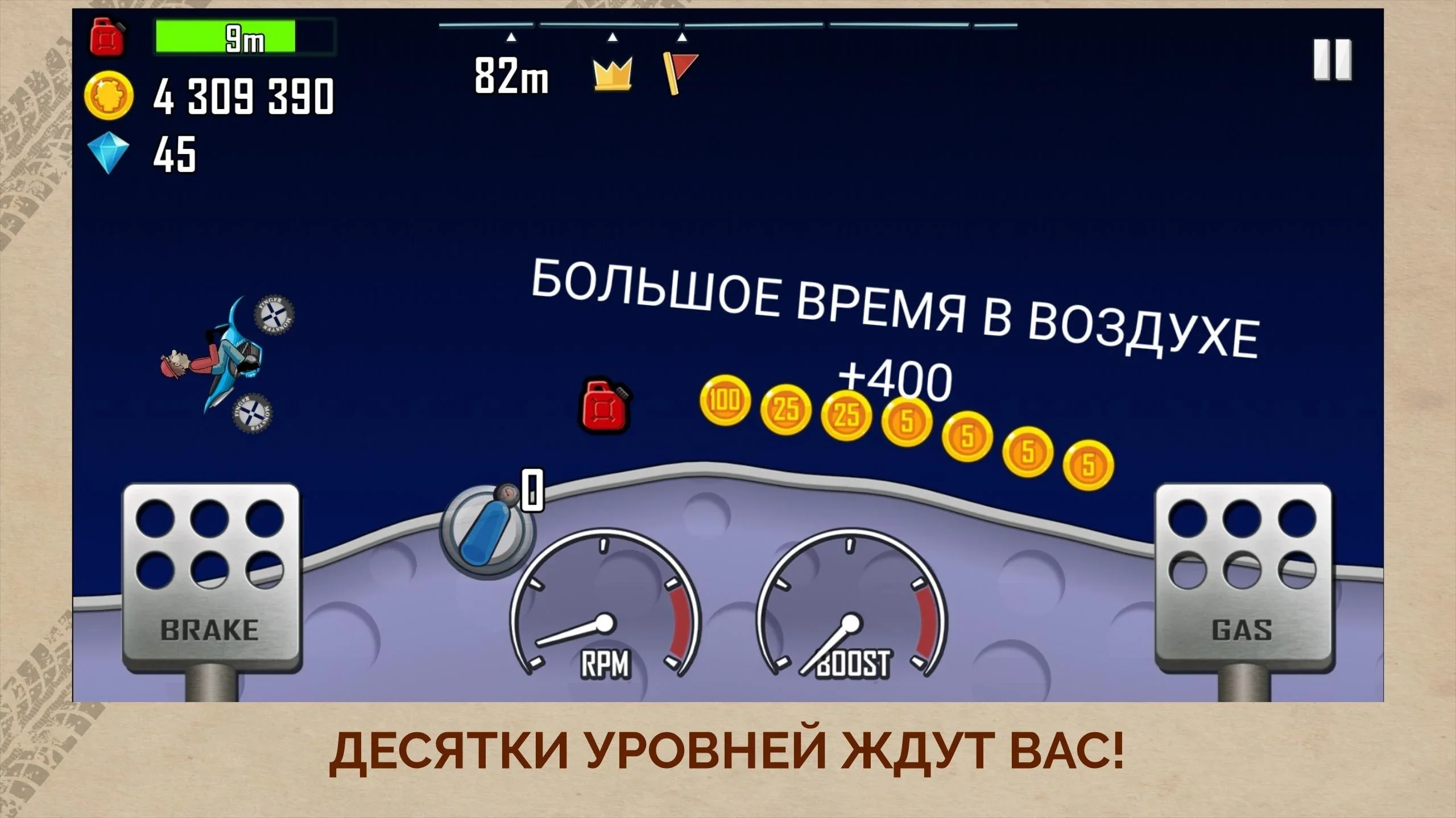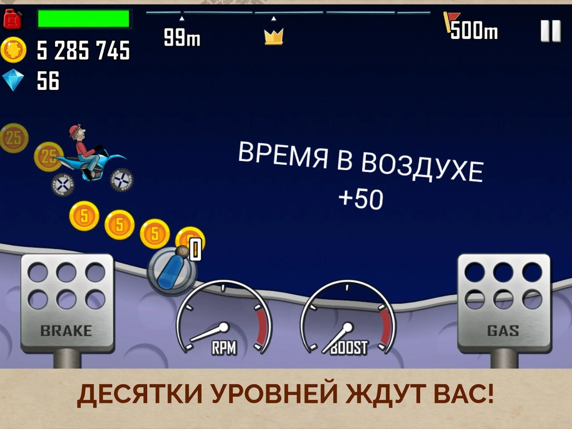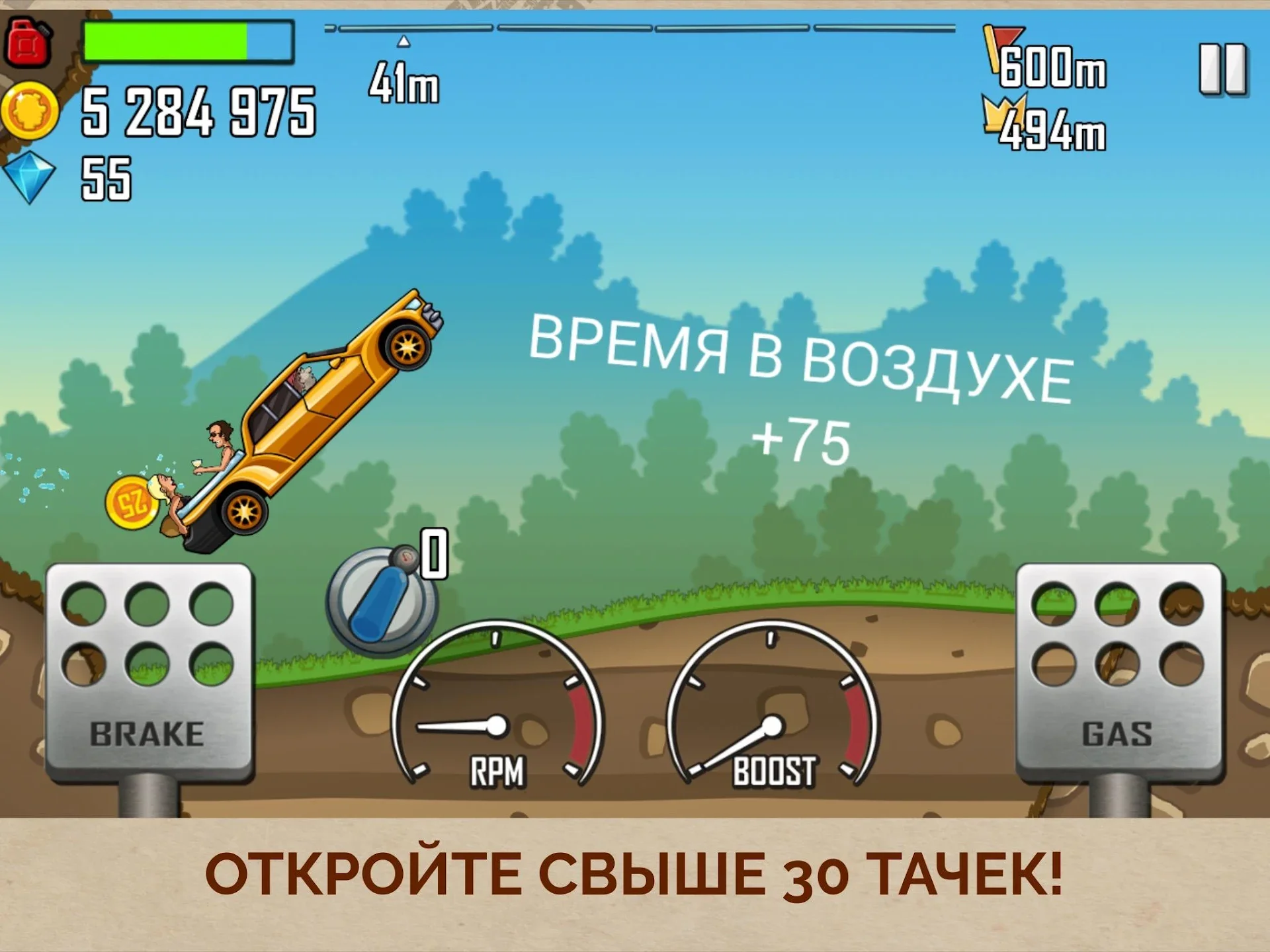 - Простое управление. Всего две кнопки газ и тормоз.