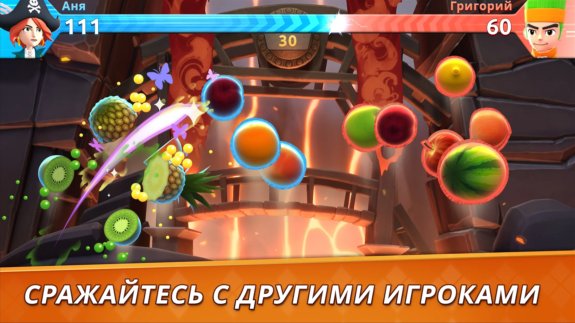 Теперь игроку предлагается на выбор принять участие в стандартном режиме игры с целью зарабатывания большего количества очков, а также добавлена возможность живой схватки с соперником, где оппонент попытается вырваться на лидирующую позицию, разрезав больше фруктов чем игрок. Конечный подсчет очков поможет выявить победителя.