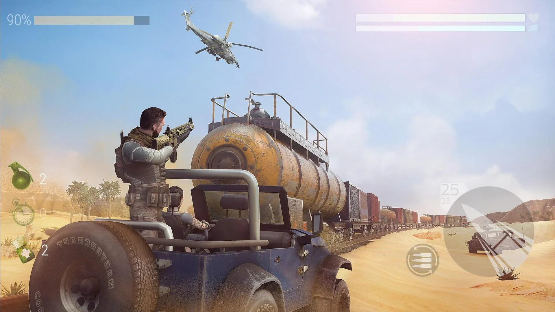 В игре сделано несколько классов героев со своими умениями, они открываются по мере прохождения заданий. Всего в игре насчитывается более 60 миссий сюжетной кампании, в рамках которой игрок спасет мир от зловещей мегакорпорации. Еще одна особенность игры — современная графика, последний, самый зрелищный выстрел всегда показывается по завершению задания в слоу-мо. И это делает Cover Fire одним из лучших представителей экшенов на мобильных платформах.
