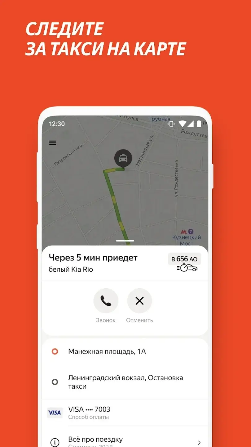 - звонок водителю или отправка сообщения;