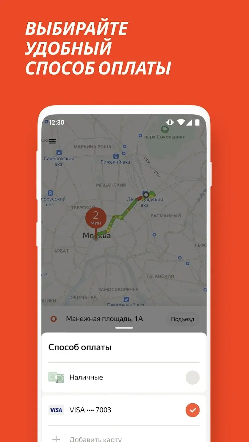 - оплата поездки наличными или картой.