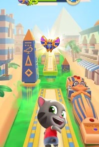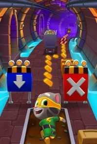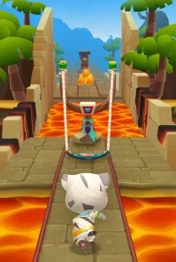 Говорящий Том: бег за золотом — аркадный раннер, где ты помогаешь Тому и его друзьям ловить енотов и собирать золото. Игру можно проходить бесконечно: бегай по улицам, крыше поезда или джунглям, уклоняйся от препятствий и копи сокровища для строительства дома.