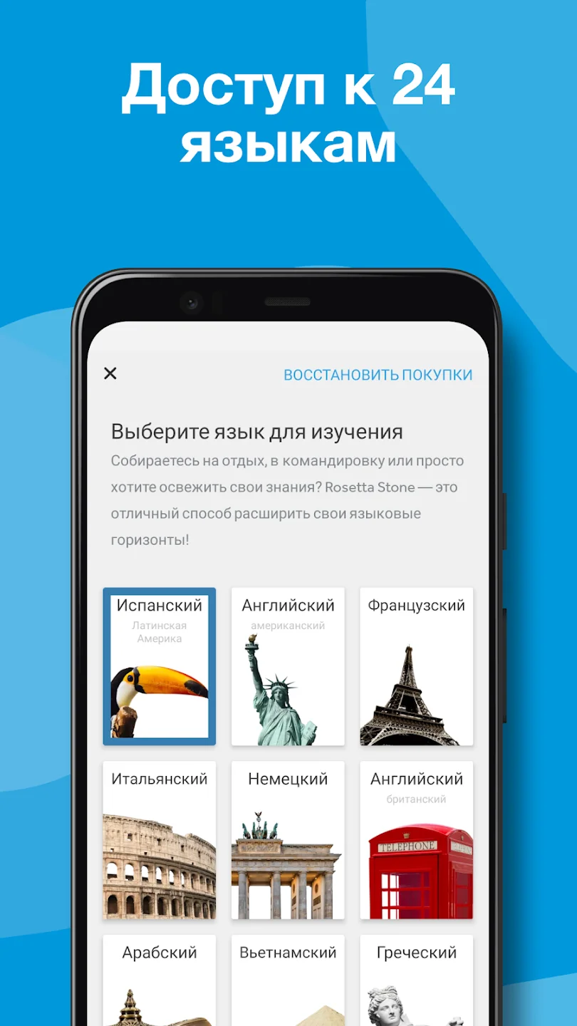 Rosetta Stone: Изучение языков — это образовательное приложение для изучения иностранных языков с упором на практику речи. Ты учишь слова и фразы через изображения и контекст. Программа не использует перевод как основу. Ты связываешь смысл с визуальными примерами. Метод строит понимание шаг за шагом. Приложение предлагает курсы для 24 языков. Интерфейс остаётся простым и понятным. Система ведёт тебя от базовых слов к полноценным диалогам.