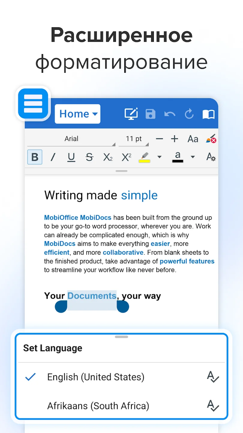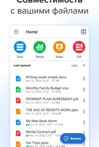 Мы сделали интерфейс понятным, а инструменты — доступными. Создавайте новые файлы, редактируйте существующие документы, вносите правки, отмечайте важные места, работайте с таблицами и пересматривайте PDF в удобном режиме. Всё это — в одном приложении, которое подстраивается под ваш стиль работы и не перегружено лишними функциями.