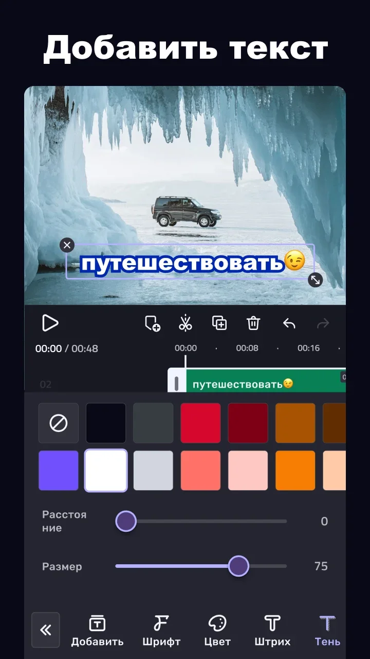 - Поддержка наложения текста, музыки и стикеров.