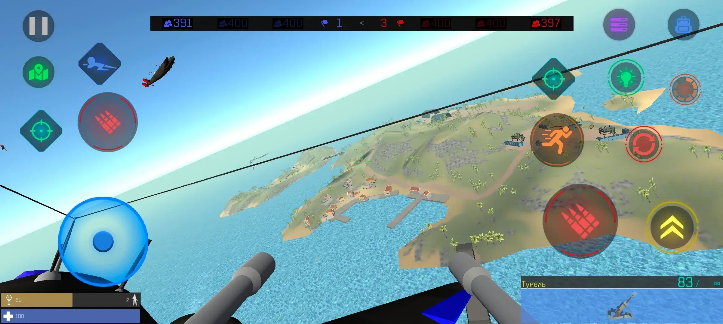 - Управление вертолётами, машинами и пушками