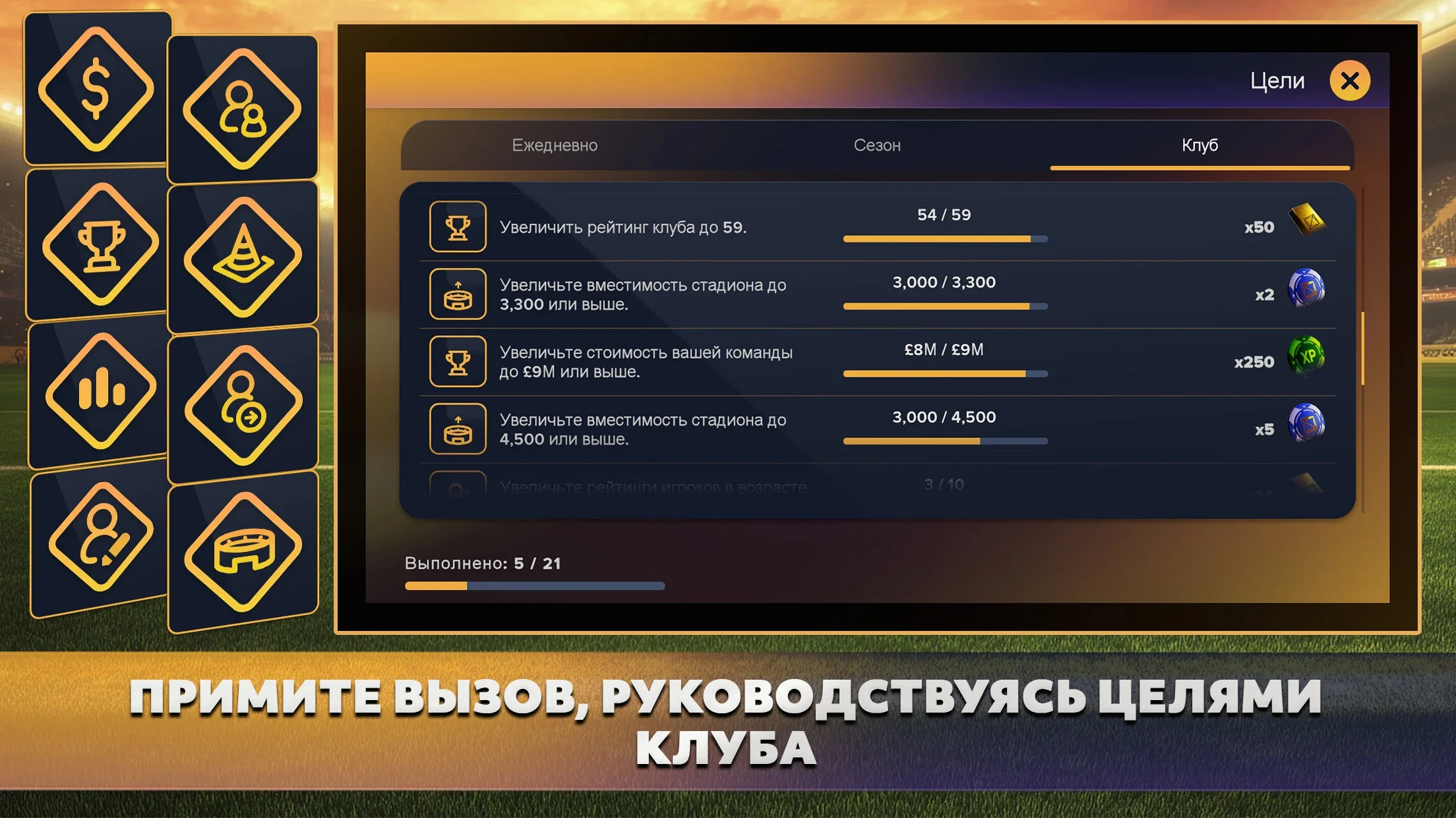 Атмосфера реального футбольного менеджмента.