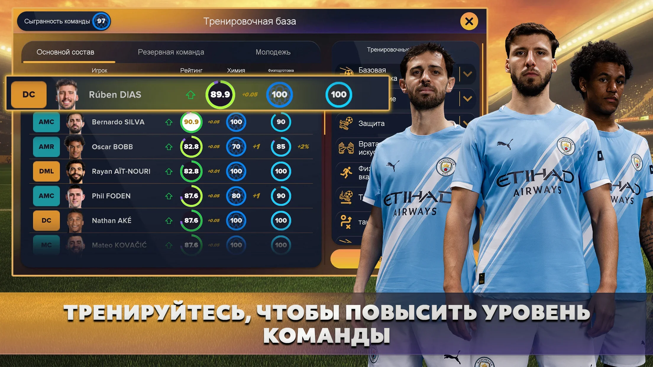 Управление тренировками и составом.
