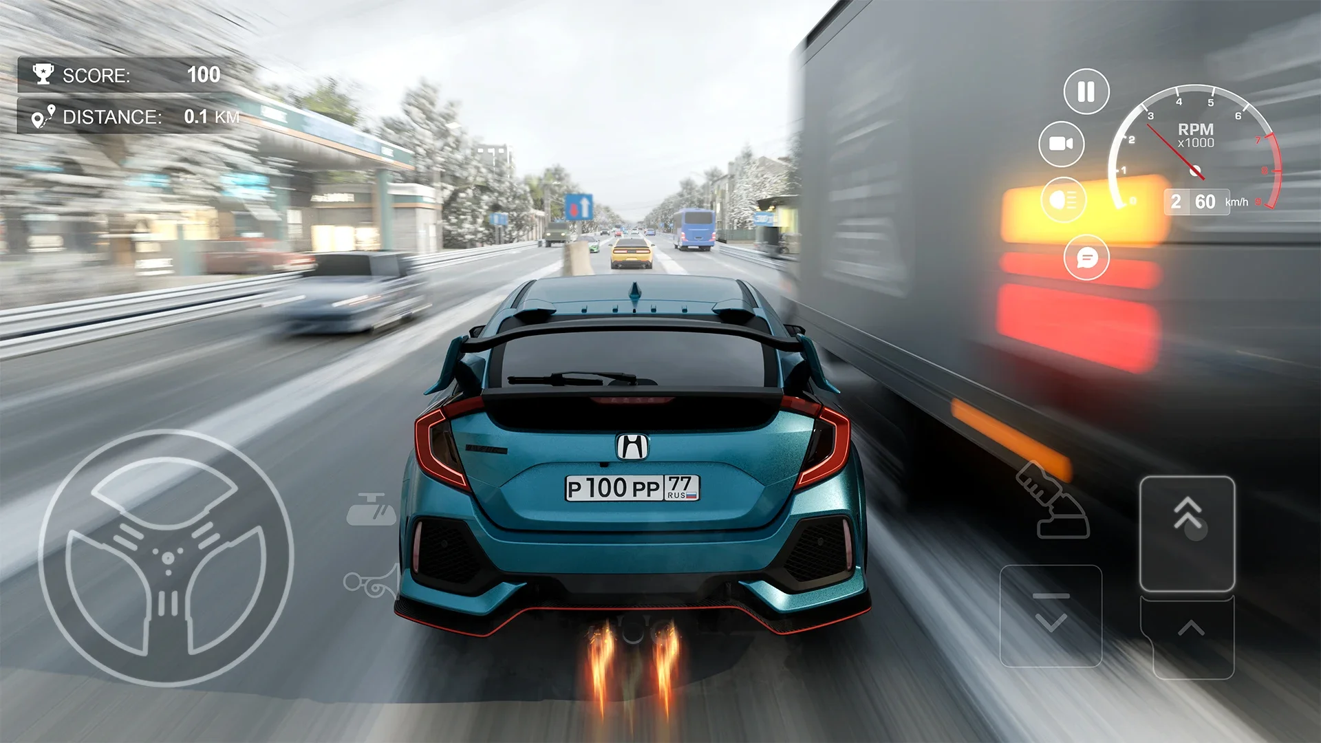 Ты сам выбираешь стиль езды: катайся спокойно или хасань на максимум. Обгоняй всех, держи руль крепче и ищи моменты для идеального манёвра. Тебе доступны машины разных классов, режимы и локации. Соревнуйся с самим собой, ставь рекорды и смотри, насколько далеко сможешь заехать без аварий.