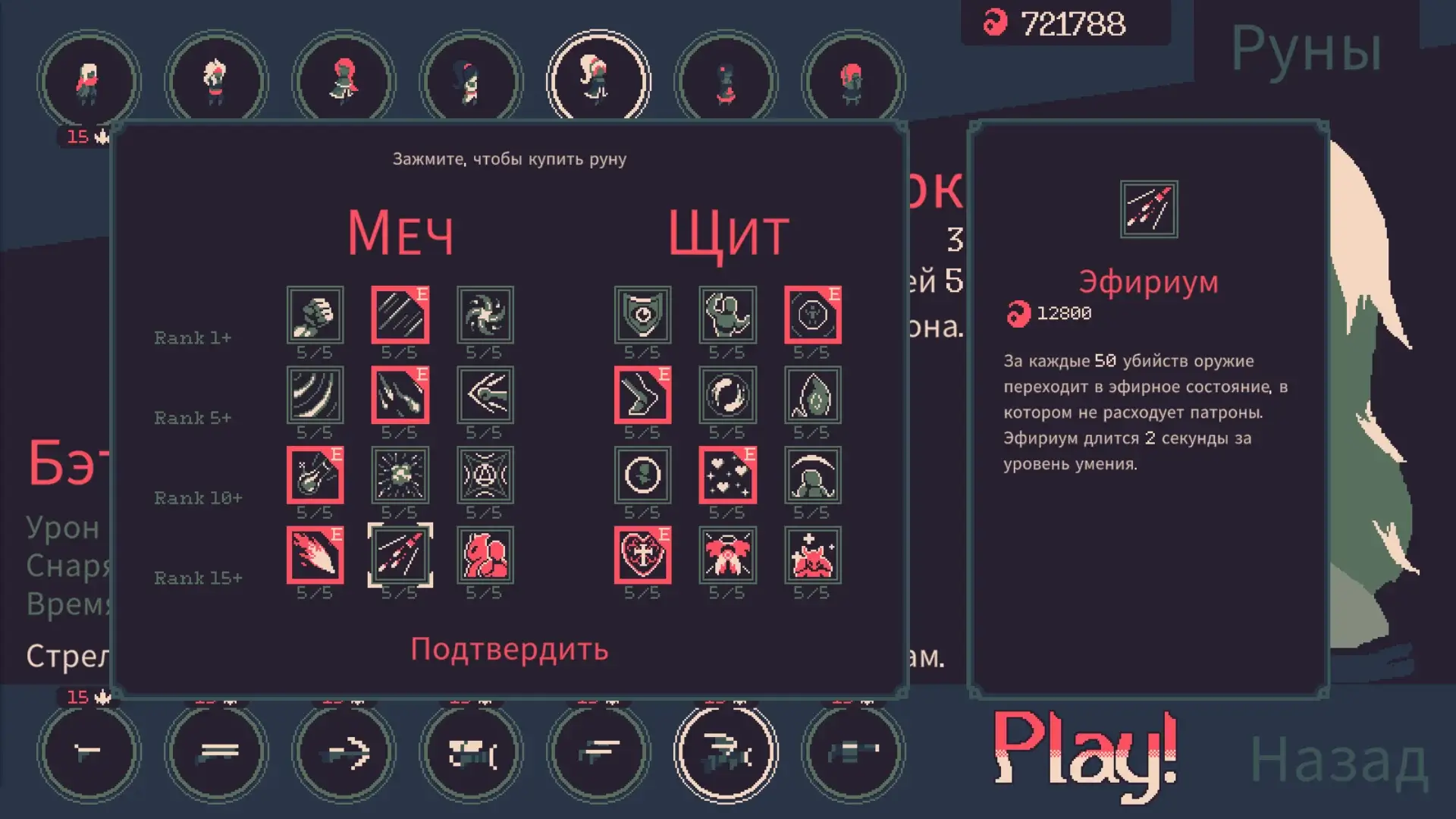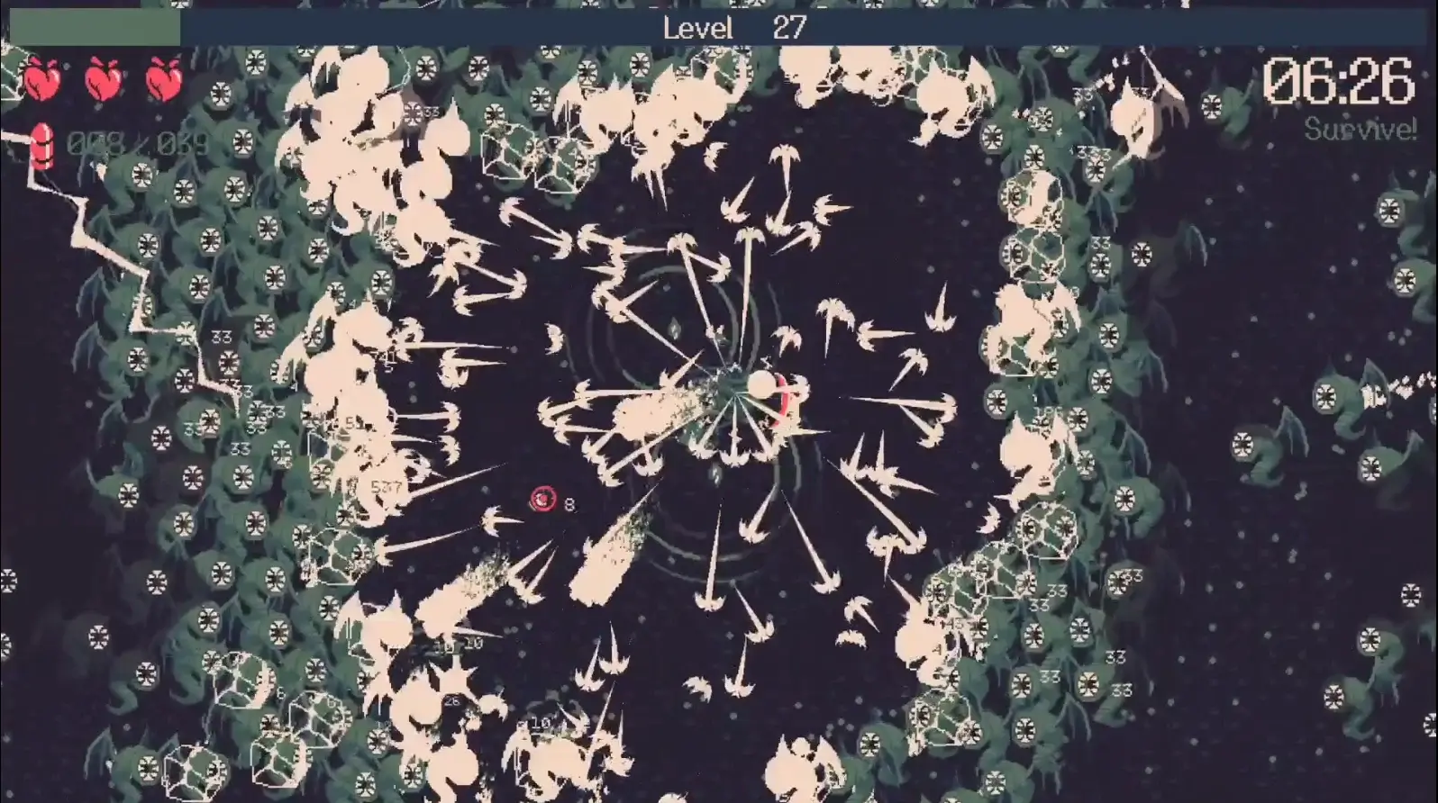 Ты выбираешь персонажа и оружие перед стартом раунда. Враги появляются со всех сторон — нужно постоянно двигаться и стрелять. После уничтожения монстров выпадают кристаллы опыта. Ты повышаешь уровень прямо во время боя и выбираешь из трёх случайных улучшений. Можешь стать огненным магом с шотганом, который поджигает толпы. Или собрать билд ниндзя с летающими кинжалами и телепортацией. Комбинации бесконечны — каждая игра отличается от предыдущей. Ты экспериментируешь с перками, синергиями и тактиками, чтобы найти идеальную стратегию выживания.