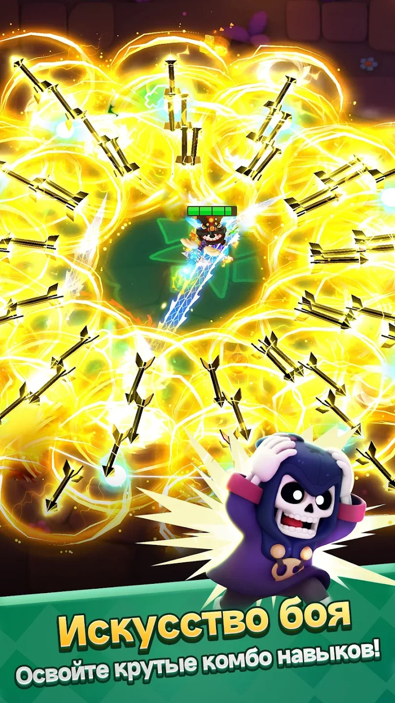 - Сотни комбинаций навыков — стрелы по стенам, копии героя, магические эффекты