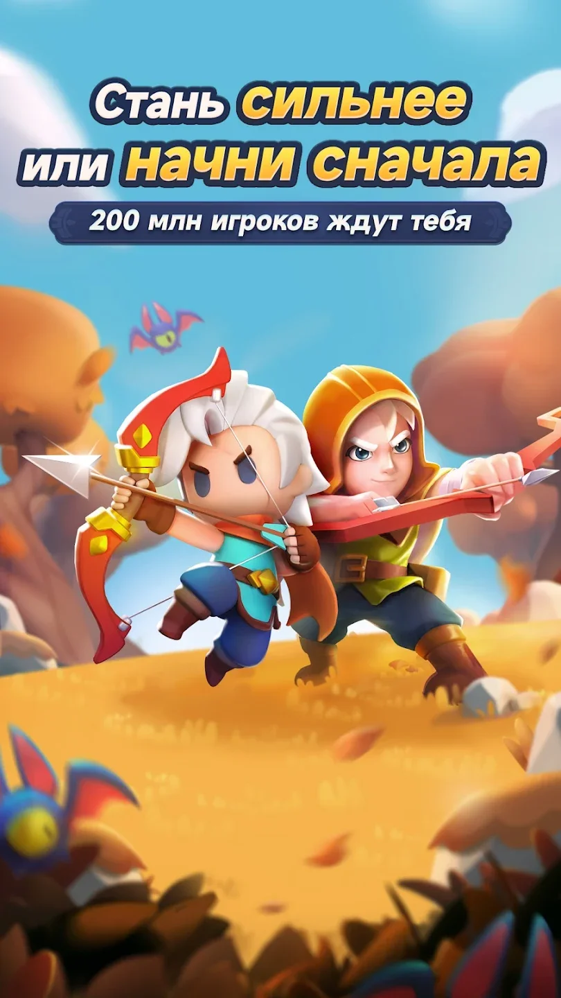 Archero 2 — это динамичный экшен-рогалик с видом сверху, где ты управляешь одиноким лучником в череде процедурных подземелий. Каждый забег начинается с базовых характеристик, а затем ты выбираешь навыки после каждой волны врагов: стрелы по кругу, цепная молния, призыв помощников, усиление крита. Карта делится на комнаты, в которых появляются монстры, ловушки и препятствия. Ты двигаешься по аренам, уклоняешься от снарядов, стреляешь только в момент остановки и следишь за позиционированием. Сложность растёт от уровня к уровню: простые скелеты и слизни сменяются магами, летающими демонами и элитными противниками с особыми паттернами атак. После прохождения главы ты получаешь снаряжение, усиливаешь броню, оружие и талисманы. Постепенное развитие аккаунта делает каждую новую попытку заметно эффективнее.