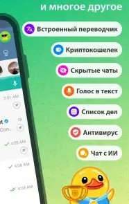 - Умный AI-ассистент внутри мессенджера.