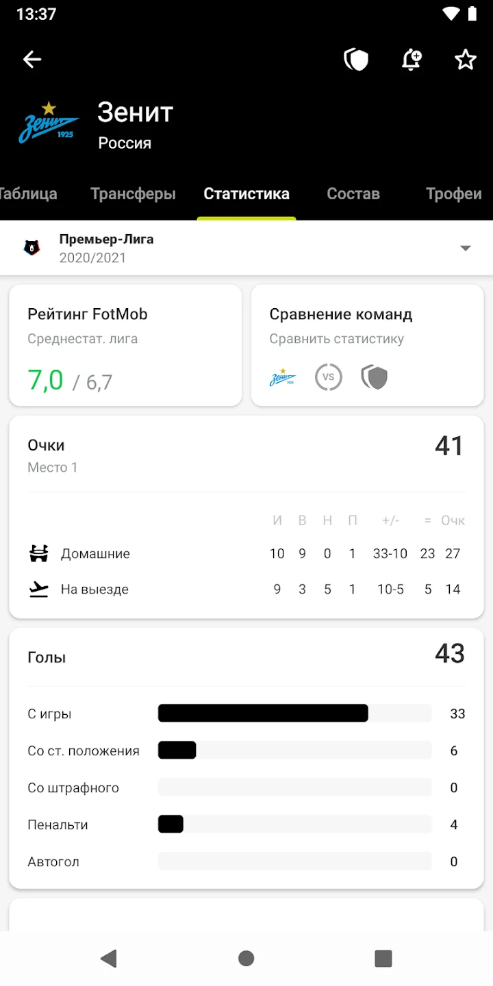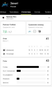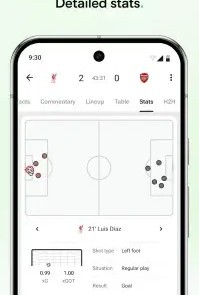 - Подробная статистика. Удары, владение, xG, карточки, замены и многое другое.