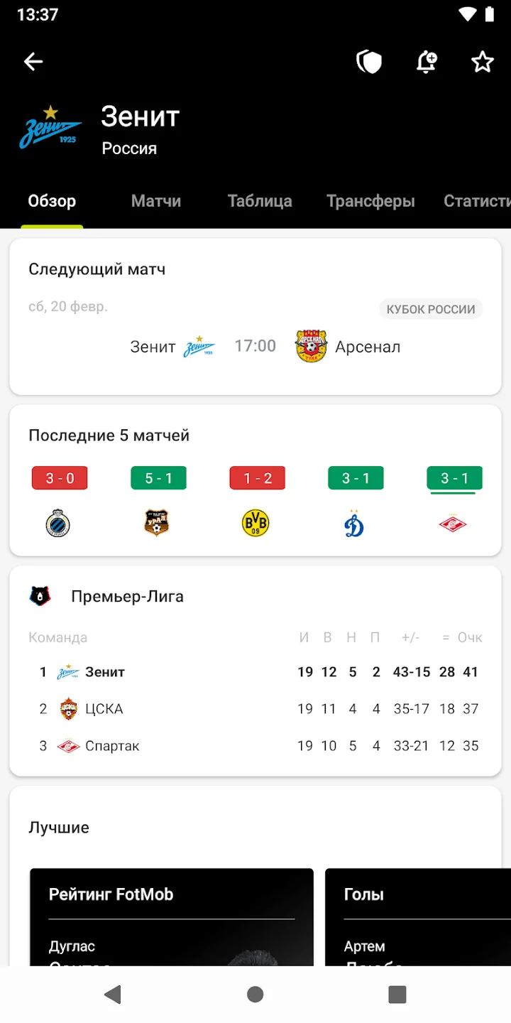 - Лента новостей. Актуальная информация о командах, игроках и матчах.