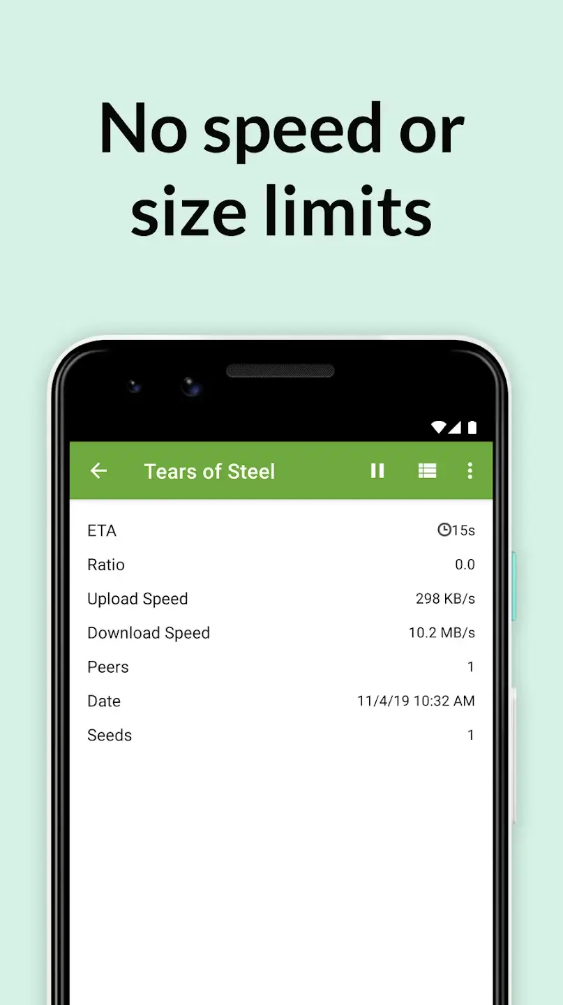 В версии Pro мы сделали загрузки максимально стабильными и комфортными. Приложение работает быстрее, не показывает рекламу, бережно относится к расходу батареи и позволяет гибко управлять скоростью, очередью и местом сохранения. Всё это даёт вам полный контроль над загрузками и делает работу с торрентами более приятной.