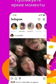 Instagram — это социальная платформа для обмена фото, видео и короткими роликами. Приложение объединяет ленту публикаций, истории на 24 часа и формат Reels. Сервис помогает поддерживать связь с друзьями и следить за любимыми авторами. Пользователь публикует контент, настраивает профиль и формирует личную ленту интересов. Алгоритмы предлагают материалы на основе активности. Интерфейс остаётся понятным и быстрым даже при большом объёме медиа.