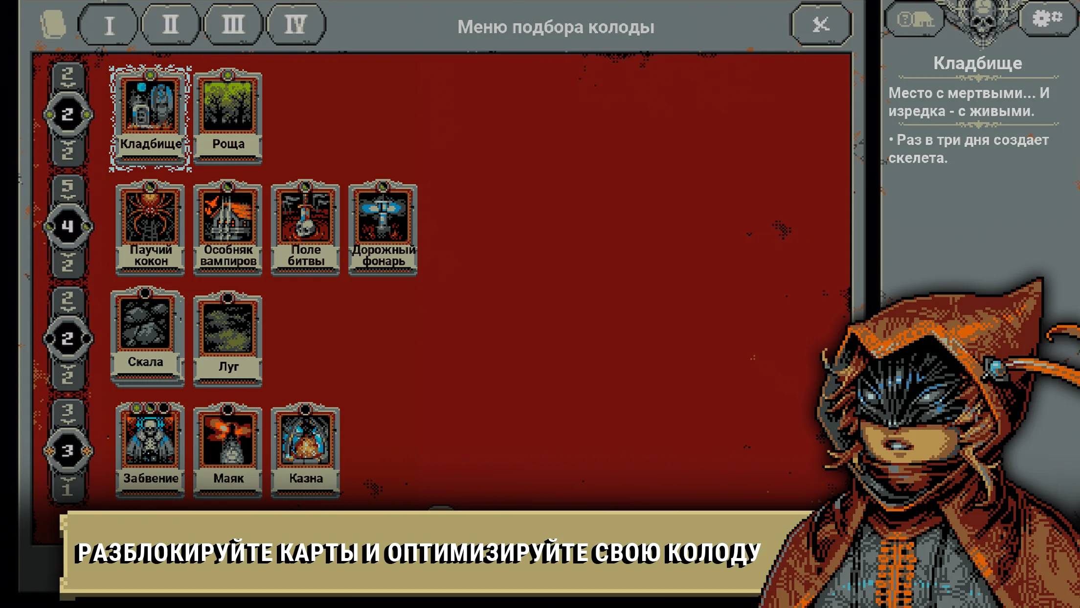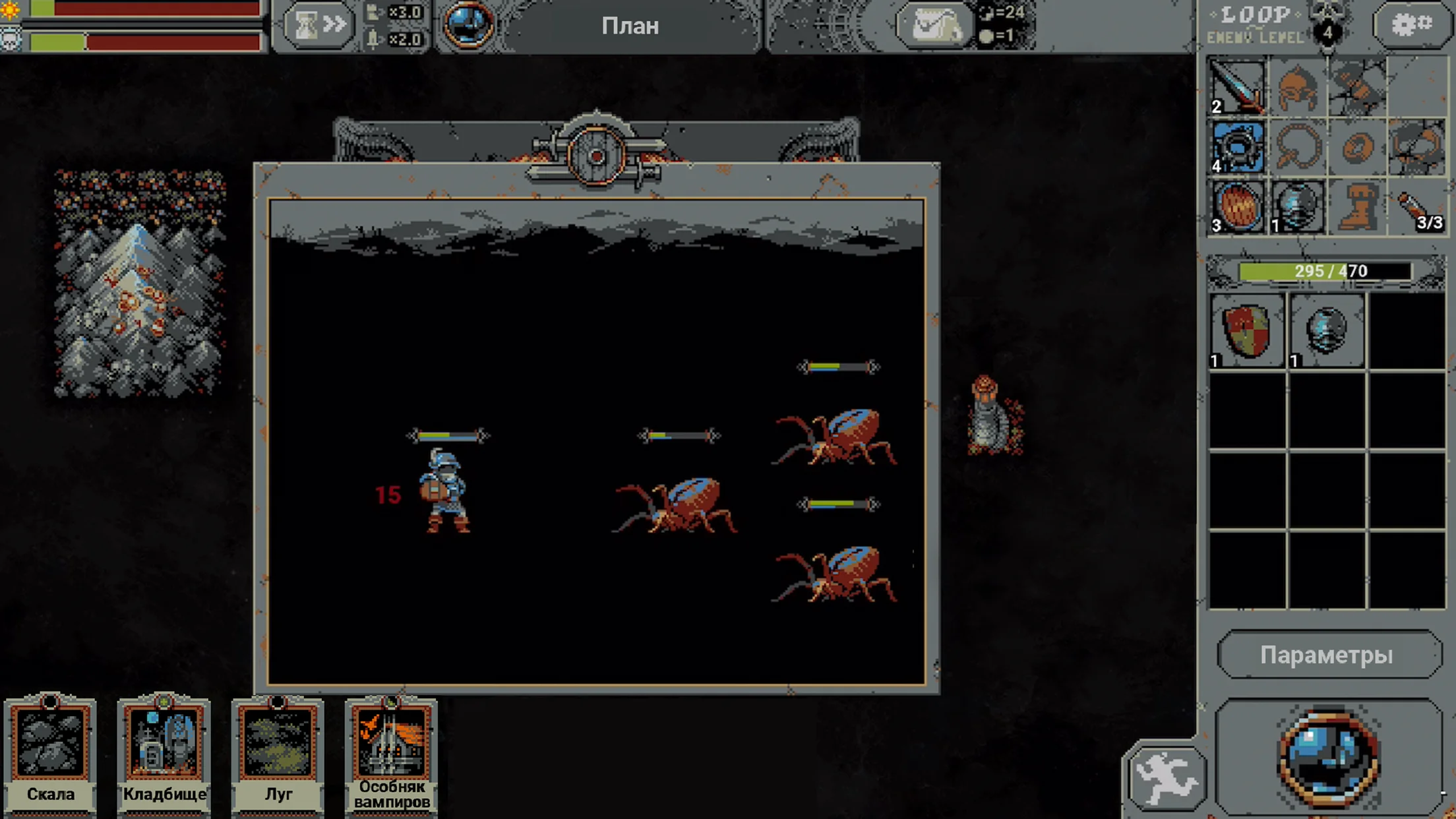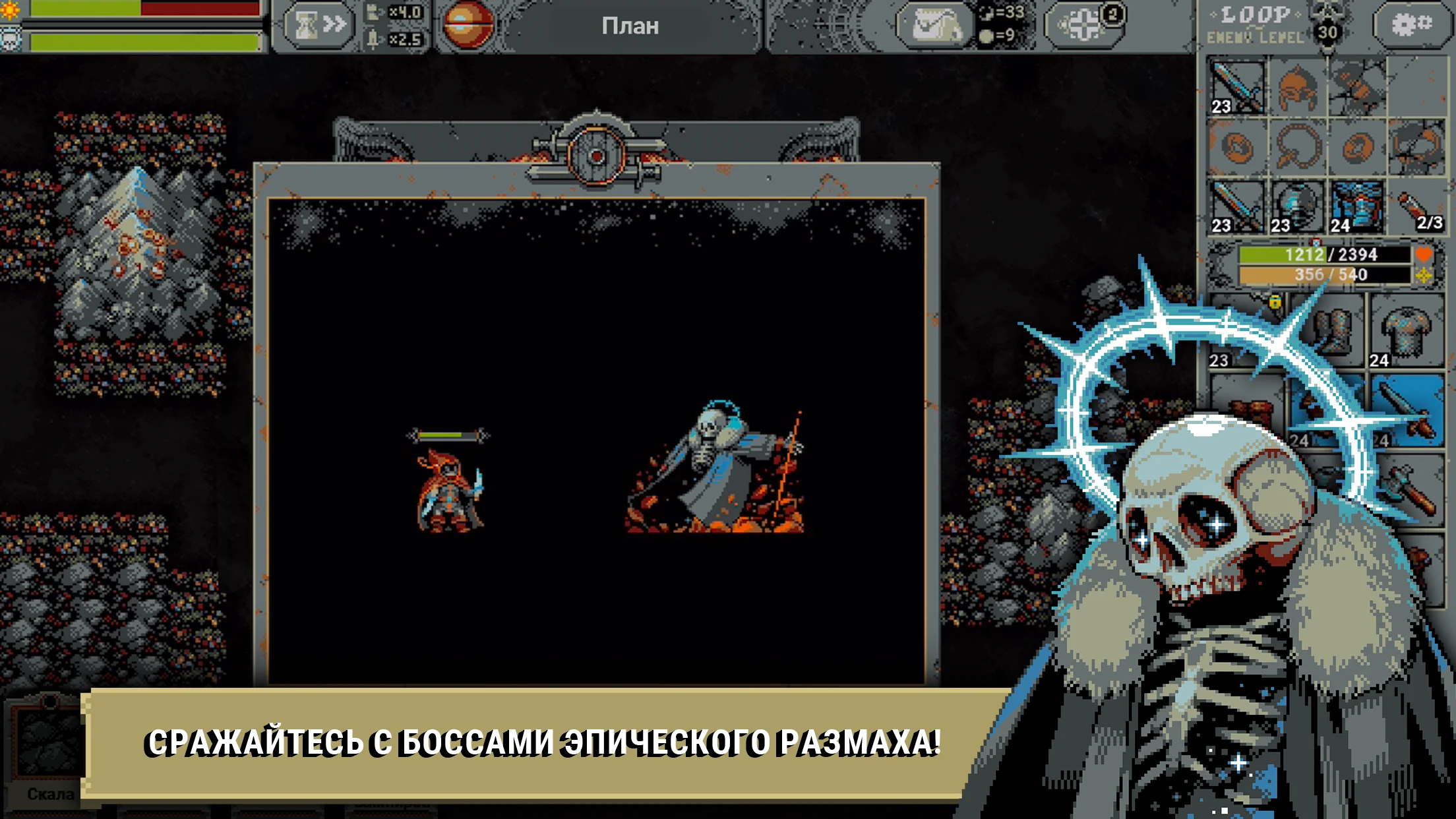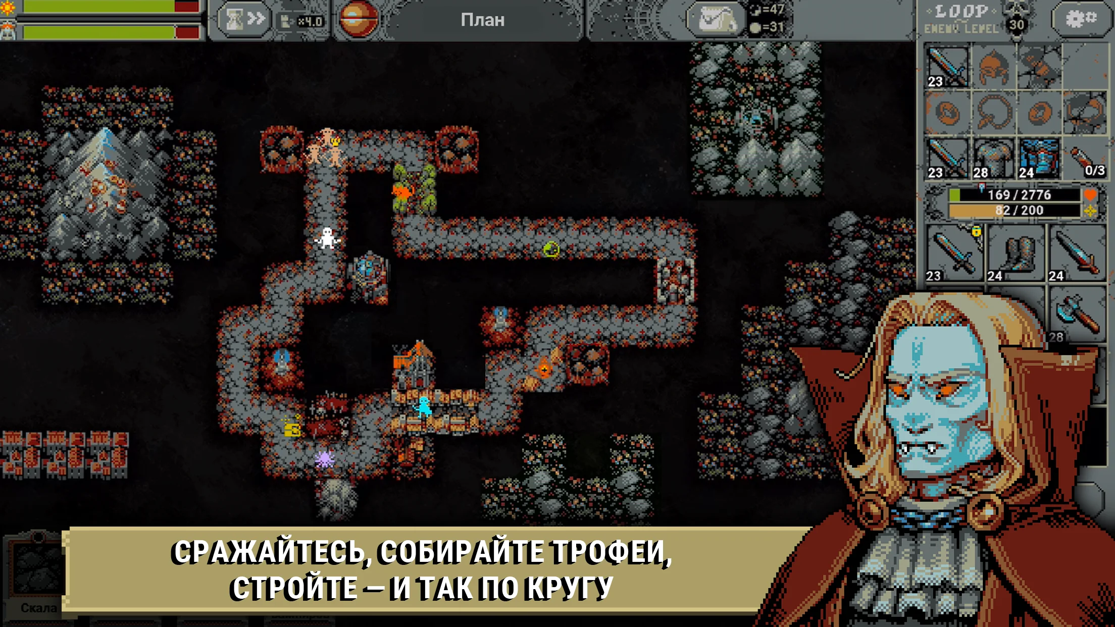 Loop Hero - ролевая игра с элементами стратегии и roguelike, где действие разворачивается внутри временной петли. Лич разрушил мир и оставил лишь фрагменты реальности. Герой движется по замкнутому маршруту и сражается с врагами автоматически. Игрок не управляет боем напрямую. Он влияет на окружение через систему карт. Карты позволяют размещать врагов, здания и элементы ландшафта. Каждое решение меняет сложность и награды. Игрок собирает ресурсы и экипировку во время прохождения. Эти ресурсы помогают восстановить лагерь и открыть новые возможности.