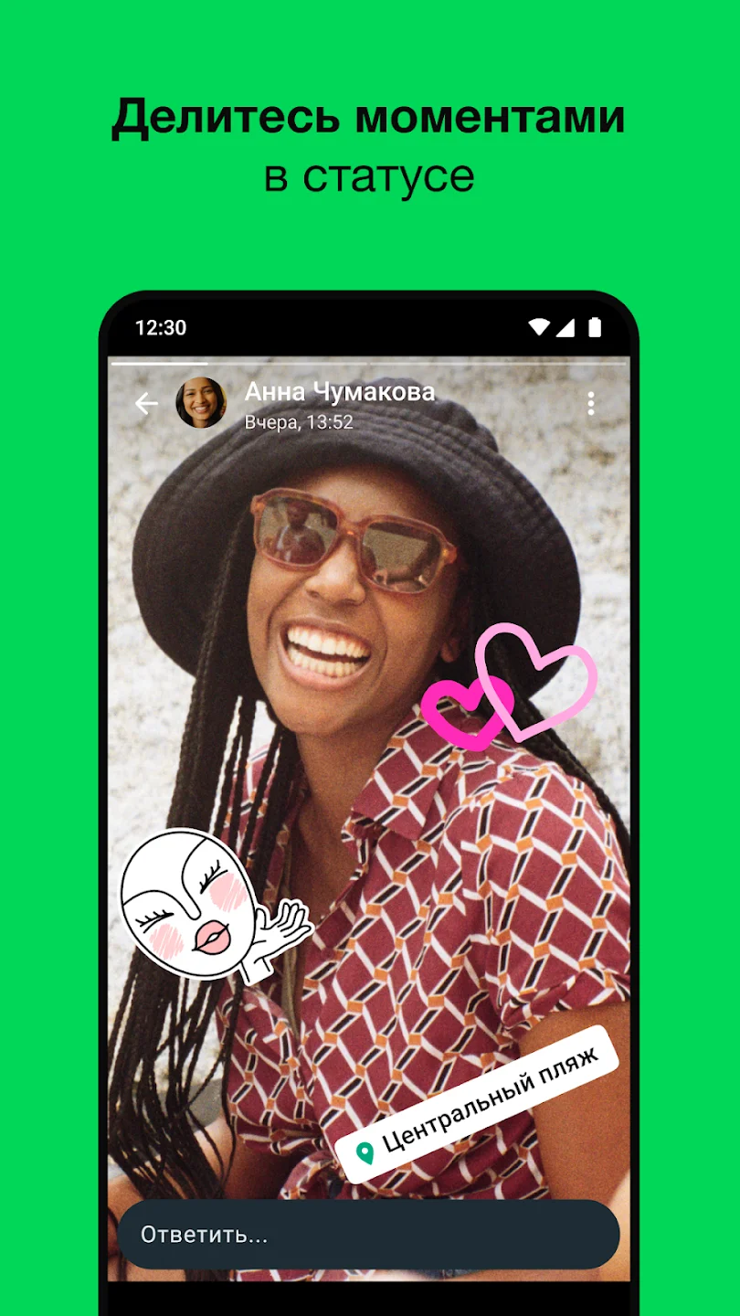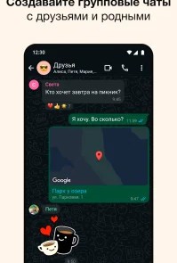WhatsApp - мобильное приложение для обмена сообщениями и звонков, которое работает через интернет. Ты используешь его для общения с друзьями, семьёй и коллегами без привязки к обычным SMS. Приложение предлагает текстовые чаты, голосовые и видеозвонки, а также обмен файлами. Всё происходит в простом интерфейсе, где основной упор сделан на быстрый доступ к переписке и контактам.