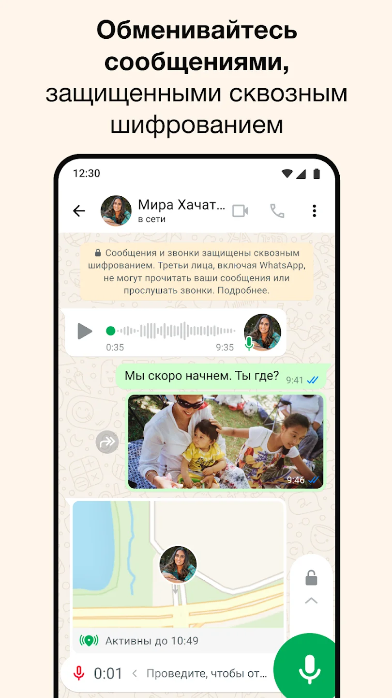 Функциональность строится вокруг общения в реальном времени. Ты отправляешь сообщения, делишься фото, видео и документами. Можно записывать голосовые сообщения, если писать неудобно. Групповые чаты позволяют общаться сразу с несколькими людьми. Видеозвонки подходят для личных разговоров и рабочих встреч. Приложение также поддерживает статусы — короткие истории, которые исчезают через время. Безопасность играет важную роль: переписка защищена сквозным шифрованием, поэтому доступ к ней есть только у участников диалога.