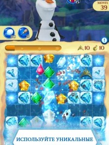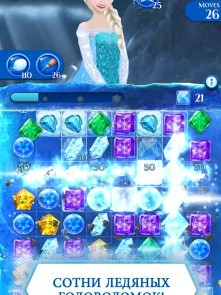 Игровой процесс включает знакомых персонажей. Анна и Эльза выступают стартовыми героями. По мере прохождения открываются Олаф, Свен, Кристофф, Ганс и Пабби. Каждый персонаж даёт уникальный бонус. Способности влияют на ход партии и помогают справляться со сложными уровнями. Игрок активирует усиления в нужный момент. Это повышает эффективность и ускоряет выполнение задач. Игра поддерживает русский язык и адаптирована под мобильные устройства. Интерфейс остаётся простым и понятным.