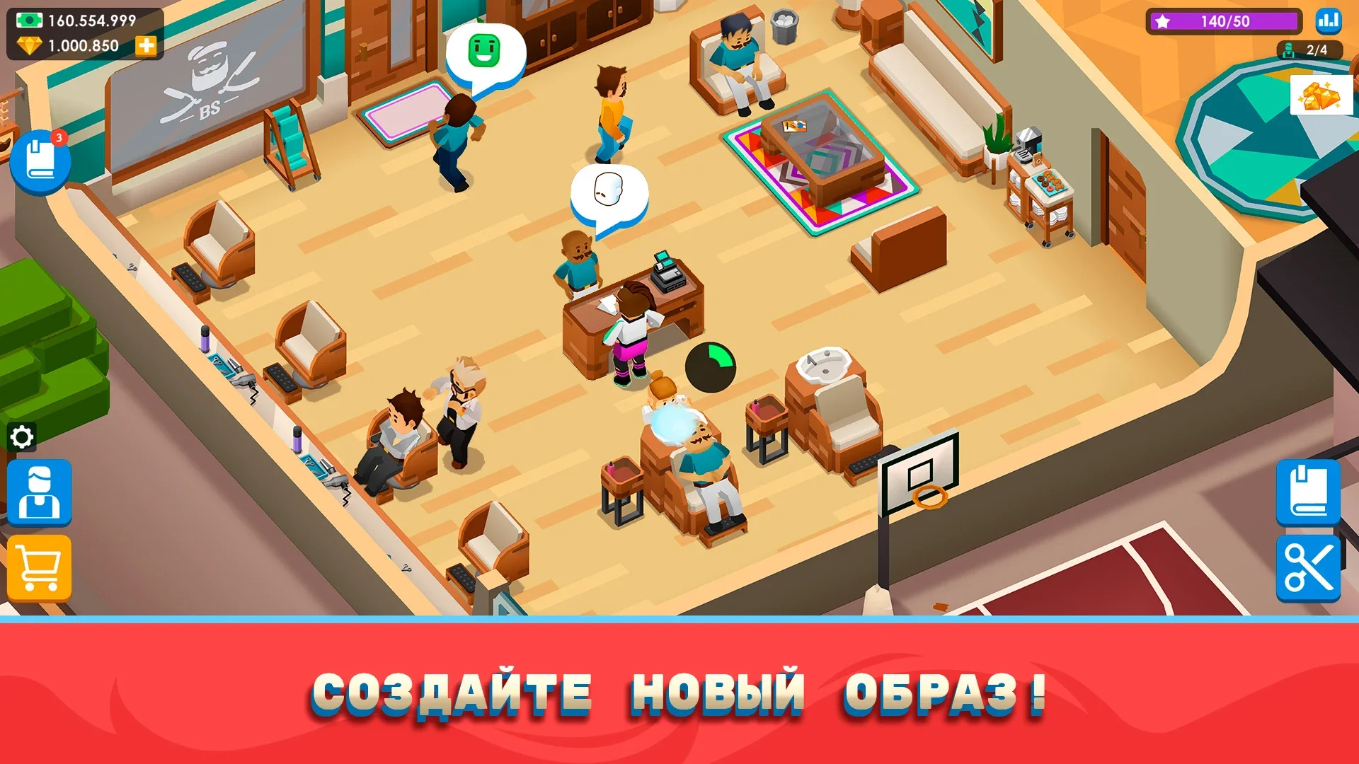 Геймплей строится вокруг улучшения салона и работы с клиентами. Игрок обновляет интерьер, покупает оборудование и расширяет список услуг. Система сотрудников позволяет нанимать мастеров и повышать их навыки. Клиенты приходят с разными запросами, и уровень сервиса влияет на прибыль. В игре представлены различные стили стрижек и ухода за внешностью. Пользователь развивает бизнес даже в офлайн-режиме благодаря idle-механике. Интерфейс остаётся простым и удобным для управления.