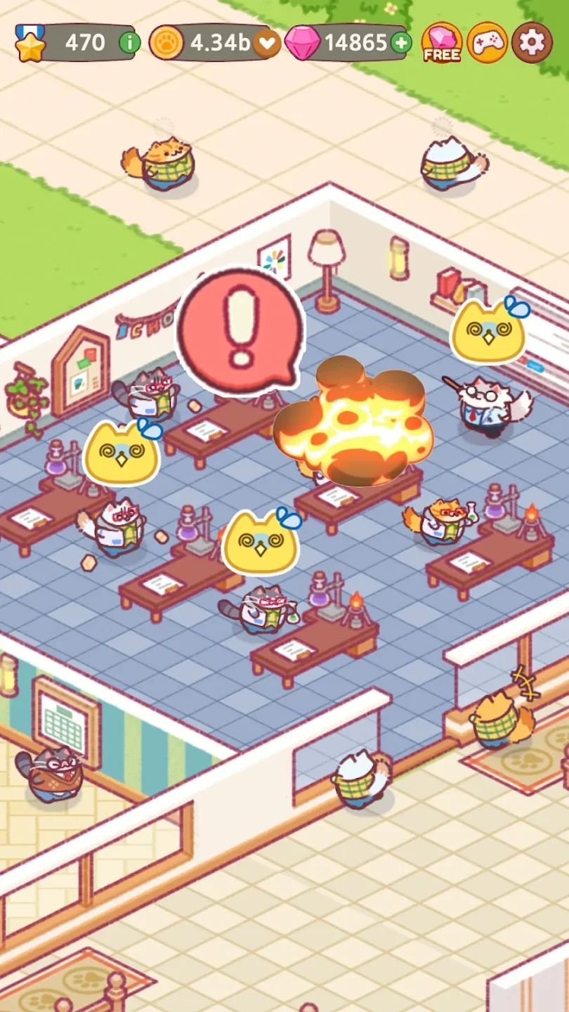 Cat School: Idle Cute Tycoon - мобильный idle-симулятор, где игрок берёт на себя роль директора самой необычной школы на свете. Ученики здесь — пушистые котята. Весь процесс строится на управлении учебным заведением: от первых скромных классов до полноценной школьной империи. Начинается всё с небольшого, слегка потрёпанного здания. Постепенно открываются новые классы, расставляются парты, добавляются уроки. Котята выстраиваются в очередь у входа — и школа наполняется жизнью. Пока одни ученики старательно грызут карандаши, другие мирно дремлют прямо за партой. Доход поступает даже в офлайн-режиме: коты учатся без остановки, независимо от того, открыто приложение или нет.