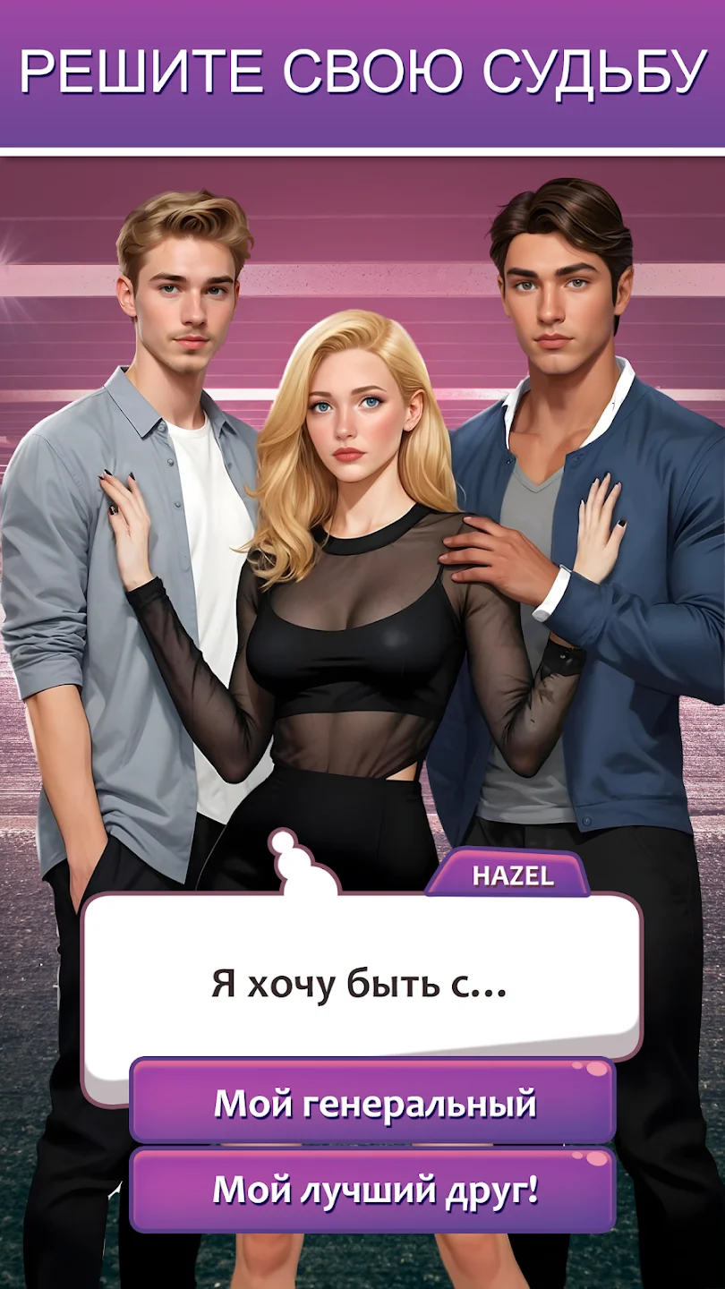 Решения - сборник романтических новелл для смартфонов Android, где предстоит играть за красивую девушку, которая проживает различные истории, встречается с парнями и строит с ними любовные отношения. Героине меняют прическу, наряжают в яркие платья, чтобы она выглядела красиво. Предметы покупают за игровые монеты. В игре есть важные выборы, влияющие на судьбы персонажей и меняющие сценарий. Историю можно прожить так, как хочется. Здесь более 60 разных сюжетов с разными персонажами от древних эльфов до боксеров и миллиардеров.